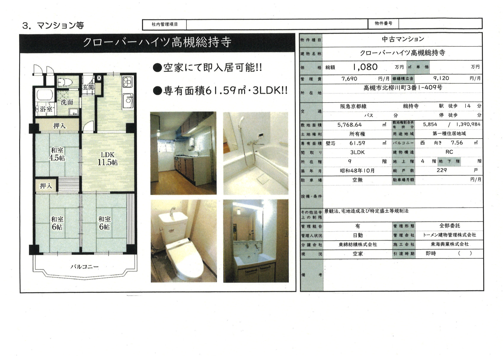 クローバーハイツ総持寺新規登録‼