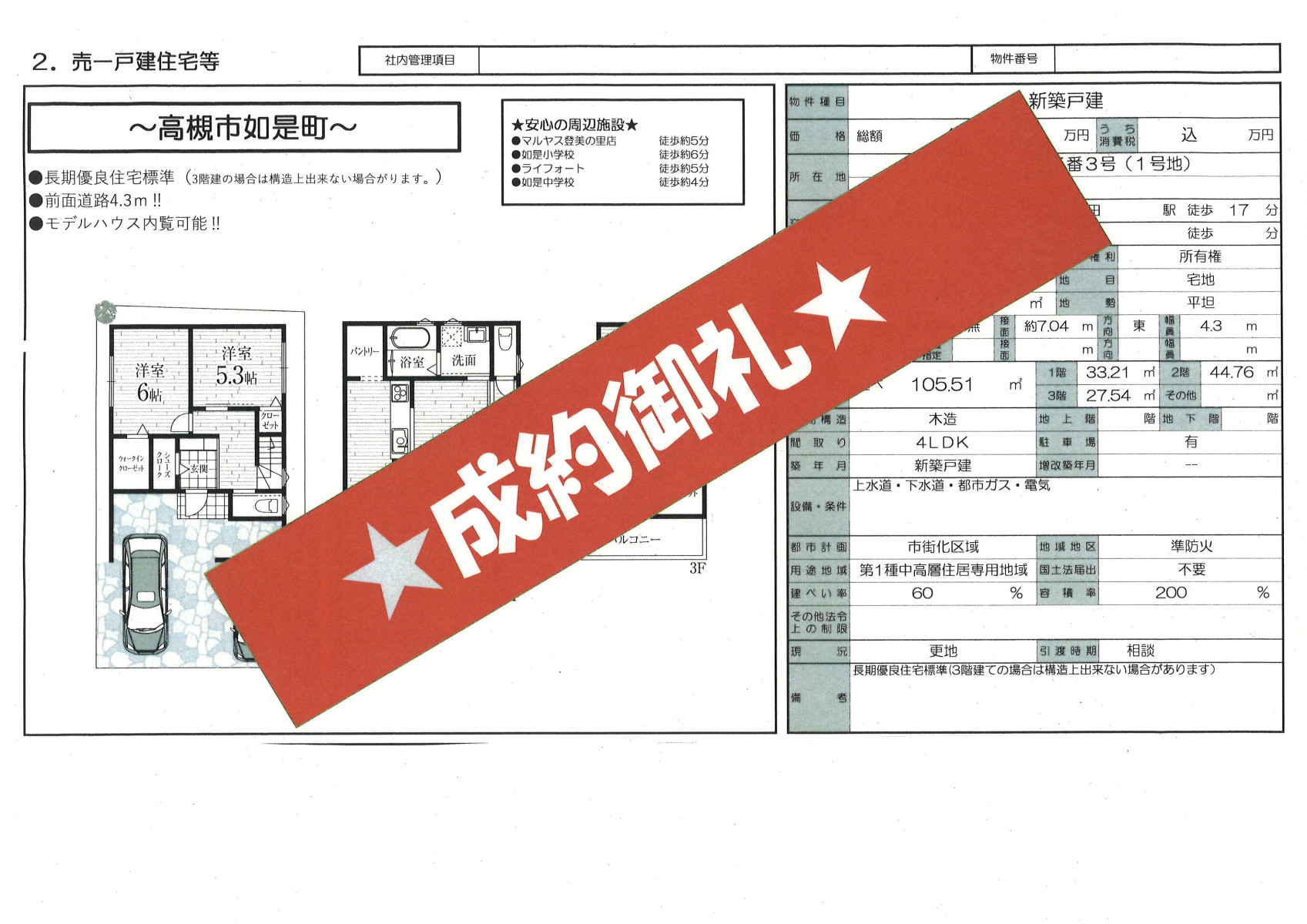 高槻市如是町1号地成約御礼‼